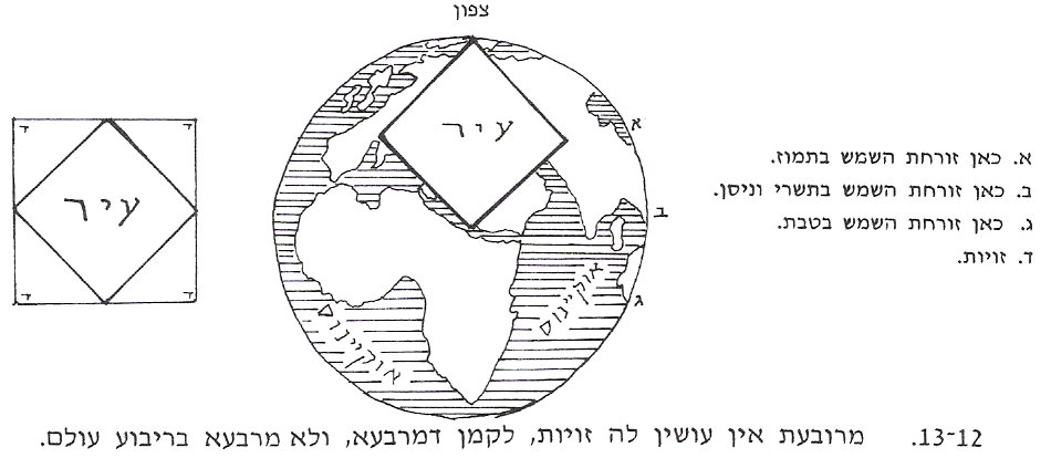 If the city is shaped like an [archer's] bow or [the Greek letter] Gamma (an 'L' shape), we consider it as if it (the hollow part) was full of houses and Chatzeros, and we measure 2000 Amos from them.