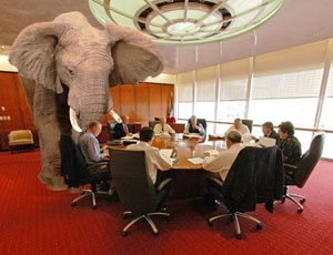 Imagine a room in which a body lies crushed, flat as a pancake. A dozen detectives crawl around, examining the floor with magnifying glasses for any clue to the identity of the perpetrator. In the middle of the room next to the body stands a large, gray elephant. The detectives carefully avoid bumping into the pachyderm's legs as they crawl, and never even glance at it. Over time the detectives get frustrated with their lack of progress but resolutely press on, looking even more closely at the floor. You see, textbooks say detectives must "get their man," so they never consider elephants.Dr. Behe writes in his book "Darwin's Black Box" (pg.232):