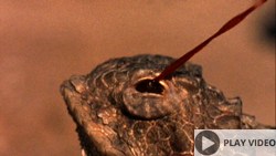 The Horned Lizard has the ability to literally burst blood vessels in it's eye sockets and shoot an aimed stream of foul tasting blood that can hit targets up to 2 meters away. Amazingly, this bizarre bursting can even be repeated several times if necessary. see it here