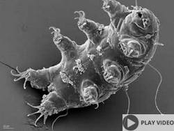 Water Bears are micro animals composed of only about 40,000 cells but are about the same size as larger single-celled organisms [1]. Water Bears have an incredible resistance to extreme conditions. They can reversibly lower their metabolism to less than 0.01% of normal and go without food or water for more than 10 years until they dry to the point where their water content drops to less than 1% of normal, and they are just a husk of their former selves. Amazingly, they can then rehydrate, forage, and reproduce. They can be frozen to 1 degree Kelvin (-458F), where atoms come to a standstill, matter goes bizarre, gases becoming liquids and liquids becoming solids and the odd rules of quantum mechanics reign. And that's all the more incredible when you consider that the water bear has a brain that somehow emerges from this unscathed. They also can tolerate pressures six times that of the deepest oceans. And a few of them once survived an experiment that subjected them for 10 days to the vacuum of space. (humans can survive for a couple minutes, max. One poor fellow at NASA accidentally depressurized his suit in a vacuum chamber in 1965 and lost consciousness after 15 seconds. When he woke up, he said his last memory was feeling the water on his tongue boiling). They can also take hundreds of times the radiation that would kill a human due to highly efficient DNA repair mechanisms. Water bears don't mind hot water either-like, 300 degrees Fahrenheit hot. Why the Water Bears "evolved" the ability to survive the kind of cold that only scientists can create in a lab, and pressures that have never even existed on our planet, etc. is a mystery to scientists. see it here